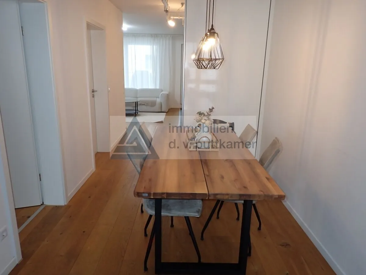 Schon beim Betreten empfängt Sie hochwertiges Fertigparkett (Echtholz Eiche), getragen von einer durchdachten Raumaufteilung. Die Küche mit moderner Einbauküche in Hochglanz setzt elegante Akzente und fließt harmonisch in den lichtdurchfluteten Wohnbereich mit Zugang zum Balkon. Von hier genießen Sie traumhafte Tages- und Abendstunden zur Süd- und Westseite. Die großen Glas-Elemente öffnen den Innenraum nach außen und versorgen ihn großzügig mit Tageslicht.