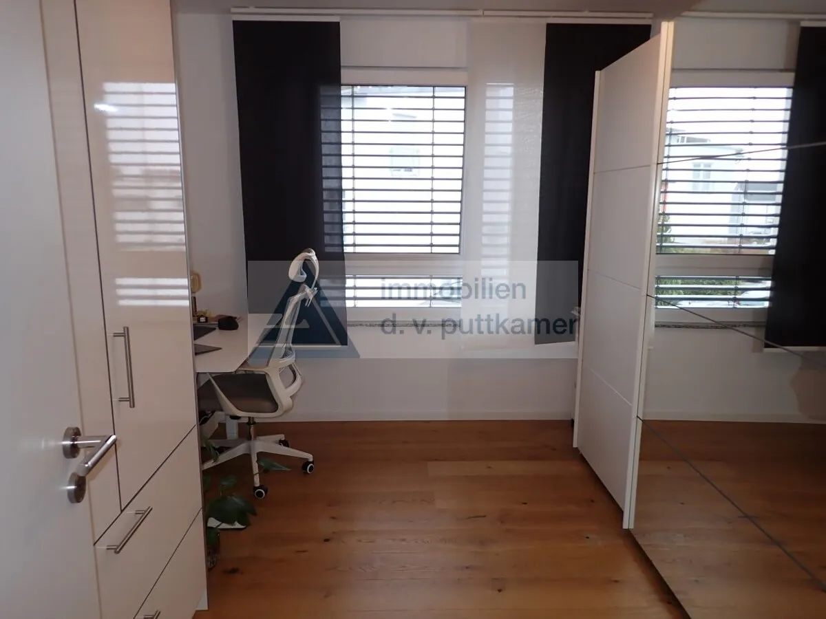 Hochwertige, raumhohe Einbauschränke im Flur, Bad und Arbeitzimmer runden das Angebot stilsicher ab.