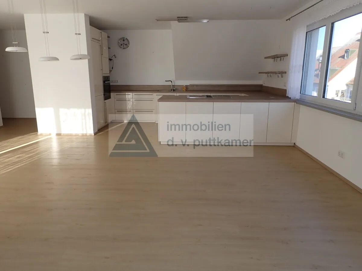 Diese wunderschöne 3,5-Zimmer-Dachgeschosswohnung lässt keine Wünsche offen und bietet eine perfekte Kombination aus modernen Annehmlichkeiten und stilvollem Wohnen. Der großzügige, lichtdurchflutete Wohnbereich mit offener Küche, Essbereich und direktem Zugang zur großen West-Terrasse ist das Herzstück der Wohnung. Hier genießen Sie nicht nur fast den ganzen Tag über Sonne, sondern auch einen spektakulären Blick in die Umgebung.